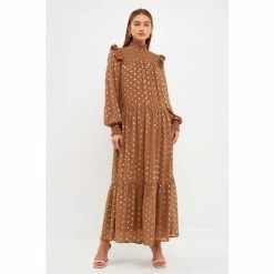 Endless Rose Polka Dot Maxi Dress Dresses Tan
