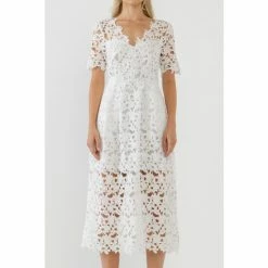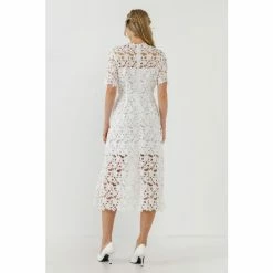This All Over Lace Short Sleeves Midi Dress is perfect for any special occasion. With its see-through short sleeves and all-over lace body, this dress is sure to turn heads. The attached lining provides coverage while the tuck details at the skirt add a touch of elegance. The center back invisible zipper closure ensures a perfect fit.Hand wash coldDo not bleachDo not tumble dryIron lowShell: 100% PolyesterLining: 80% Polyester 20% CottonJN049DTotal length: 49.75″ Bust: 34″