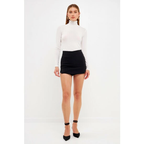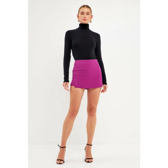 The perfect piece to take your outfit from day to night. This high waist skort features an asymmetric hem detail and a side hidden in seam zip closure. With a versatile, stylish design, it’s perfect for all occasions. Dress it up or down, this skort will have you looking polished and put together no matter what the occasion.