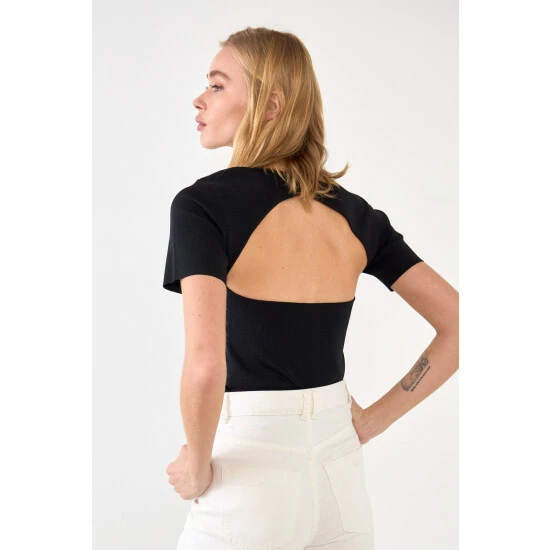 Introducing new Back Cut-out Detail Knit Top. This top is perfect for any occasion, whether you’re headed to the office or out for drinks with friends. The back cut-out detail adds a touch of sass, while the round neckline and short sleeves keep it classy. The knit top is comfortable and breathable, making it perfect for any season. Add this top to your wardrobe and be ready for anything.