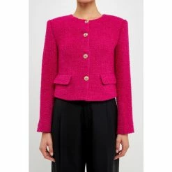 Up your style game with this Round Neck Boucle Jacket. This sleek and sophisticated jacket will have you looking put together whether you’re running to the office or heading out for a night on the town. The round neckline and 4 buttoned closures give this jacket a polished look, while the pockets add a functional touch. With this jacket, you’ll be able to take your look to the next level.