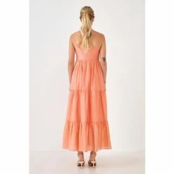 A timeless silhouette with a modern update, this is the perfect dress for any occasion. The button detail tiered midi dress features a sleeveless design, center front button details, and a tiered skirt. The dress is lined for a smooth and comfortable fit. The adjustable shoulder strings allow you to find the perfect fit.
