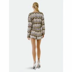 – Multi sequins- Zig zag stripes- Long sleeve- Wrap style- Deep v neckline- Hook and eye optional- Romper- Lining- Exclusive of elastic