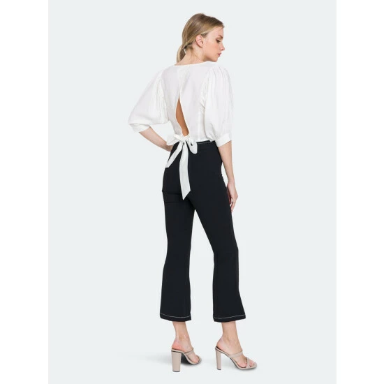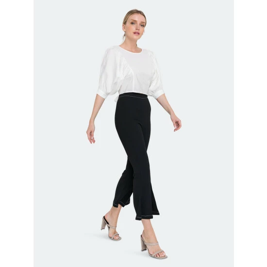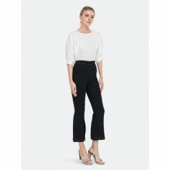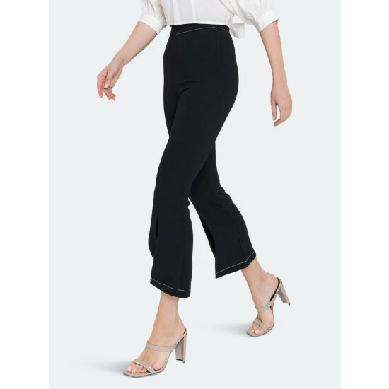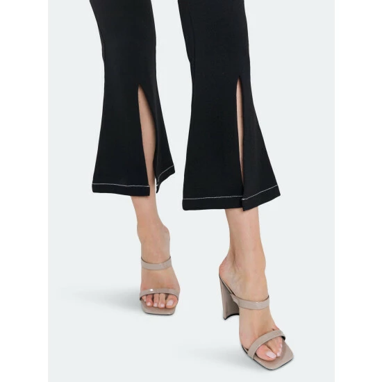 – Slight flare at hem- Slits at hem- High waist pants- Invisible zipper at side- Total length: 38.50″, Waist: 27″