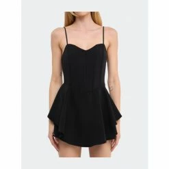 Ready to take on anything that comes your way, this corset bustier Ruffled Romper will have you feeling your best. The stretch corset bustier top is designed to hug your curves in all the right places while the ruffled bottom adds a touch of playfulness. With adjustable spaghetti straps and an invisible side zipper, this romper is sure to become a fast favorite in your wardrobe.