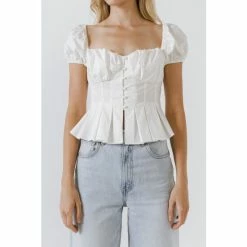 Stand out at your next special event in this stunning corset top. A timeless classic, this corset top is updated with modern details. From the pretty short puff sleeves to the front button closure, this top is sure to turn heads. Perfect for any formal occasion, this white corset top adds a touch of elegance and sophistication.