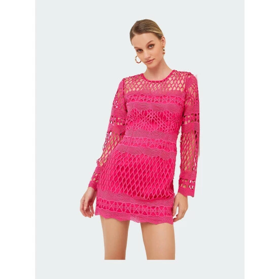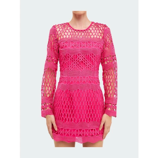 Ready to show off your figure? This Crochet Bodycon Mini Dress is perfect for a night out on the town. The form-fitting dress flatters your curves while the scallop edge on the long sleeve openings adds a touch of elegance. You’ll definitely turn heads when you walk in the room wearing this dress.
