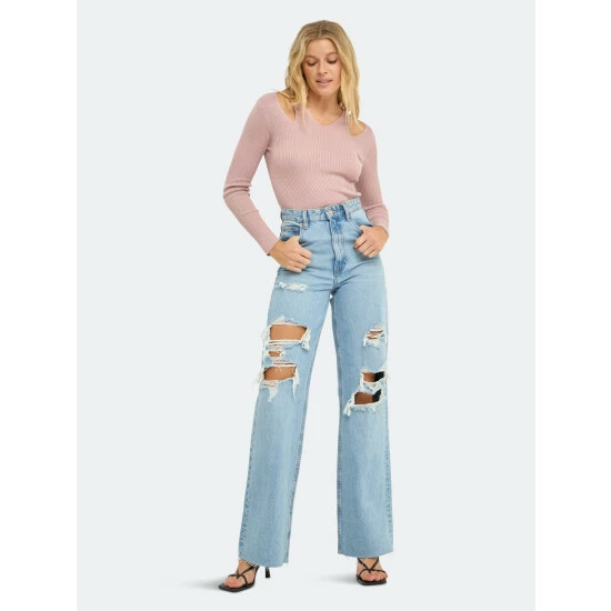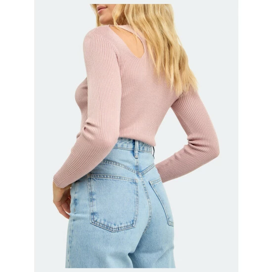 – Shoulder cut out- Long sleeve- Crop length- Ribbed knit