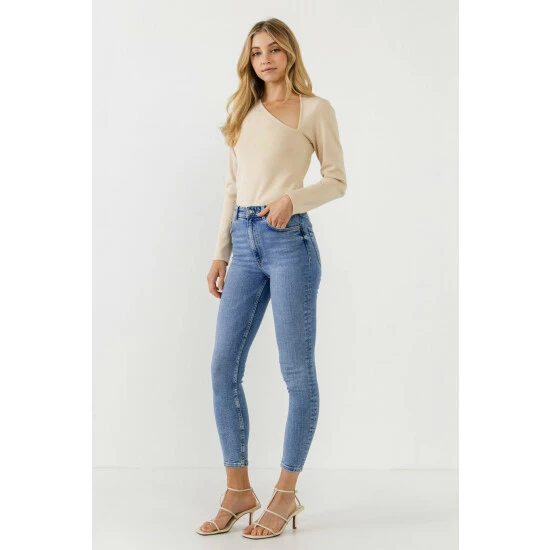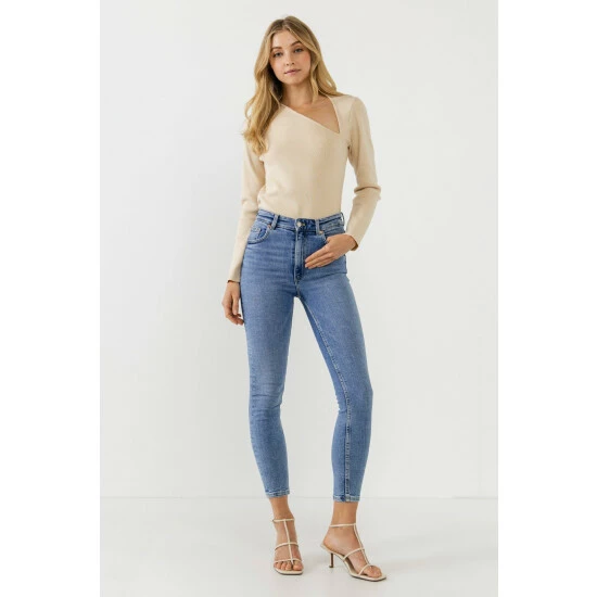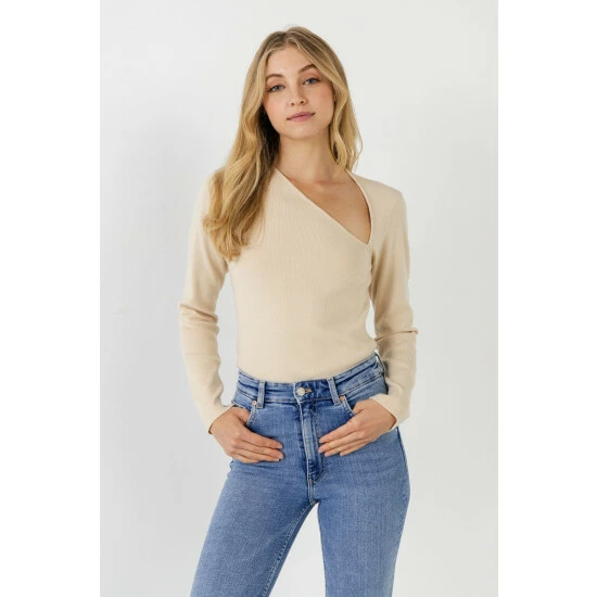 – Front side cut out- Knit sweater- Long sleeve- Fitted- Regular length- Total length: 23″, Bust: 30″