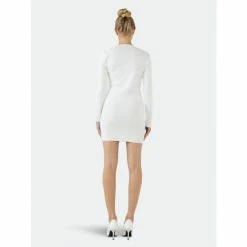 Slay the chill in this cut out long sleeve mini dress. This knit dress is perfect for fighting off the winter chill. With a front cut out and mini length, it’s stylish and comfortable. Plus, the long sleeve and round neckline keep you warm on those cold days. Style this dress with booties and a faux fur coat for a chic look this winter.