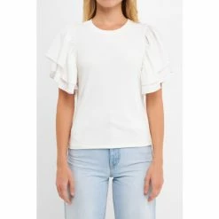 Looking for something a little different in a summer top? Check out our Double Layers Ruffle Sleeve Crew Neck Top. The knit bodice is comfortable and breathable, while the ruffled sleeves add a touch of fun and elegance. This top is perfect for any summer occasion – from work to weekends out.