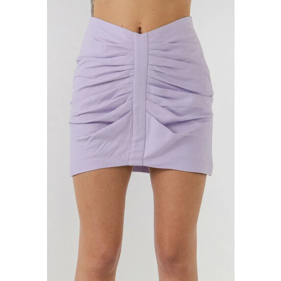 Looking for a new summer mini skirt? Check out our Draped Linen Mini Skirt! This skirt is made from a lightweight linen material and features draped ruching for a flattering fit. It also has a side zipper closure and is lined for comfort. Pair this skirt with a cute tank top or blouse and sandals for the perfect summer look.