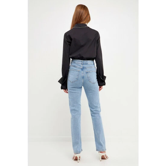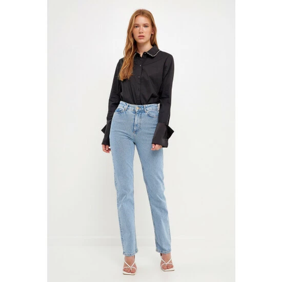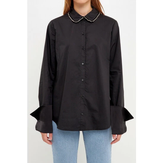 Elevate your style with this must-have beaded poplin shirt. Made from 100% pure cotton, this lustrous shirt features elegant gunmetal beading that gives it a touch of glamor. With long sleeves and a hidden placket, it’s perfect for dressing up or down. Add this chic piece to your wardrobe and wear it all season long. Whether you’re going out for dinner or hitting the office, this will be your go-to shirt.