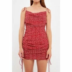 – Side ruching spaghetti ties