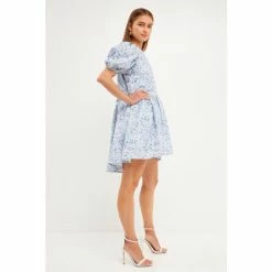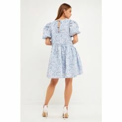 Elevate your spring style with this floral jacquard high low dress. With its beautiful floral print and romantic high low hem, this dress is perfect for special occasions or a day out with friends. The drop waist and puff sleeves add a touch of flair, while the soft fabric makes it comfortable to wear all day long. Add a touch of elegance to your wardrobe with this stunning floral jaquard high low dress.