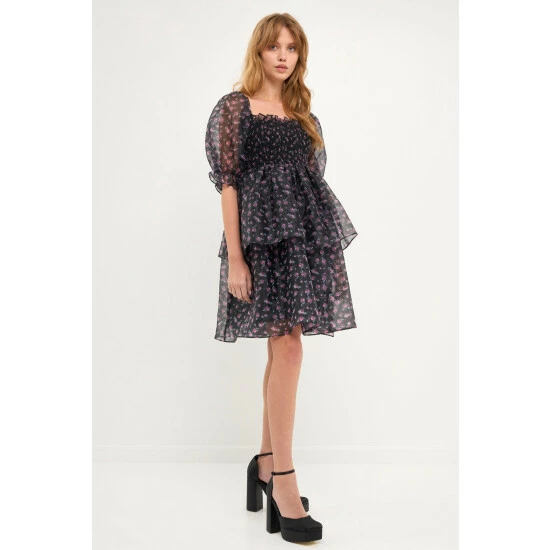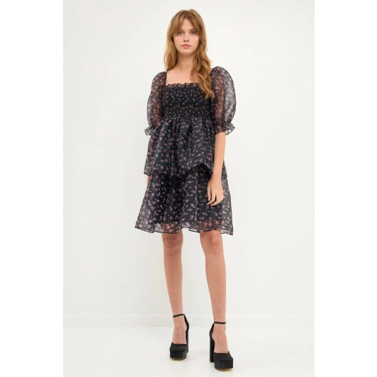 Give them something to remember you by in this Floral Organza Double Ruffled Baby Doll. With a smocked bust and double tiered skirt, this babydoll exudes confidence and femininity. The organza floral fabric is delicate and beautiful, while the puff sleeves add a touch of playfulness. You’ll love the way you feel in this babydoll, and they’ll love the way you look.