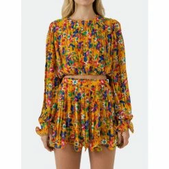 The Floral Pleated Blouson Crop Top is the perfect addition to your wardrobe. With a floral print and pleated design, this top is both stylish and flattering. The long sleeves and elastic waist provide both comfort and style, while the back keyhole adds a touch of femininity. The lining ensures that this top looks great on any body type.