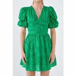 This dress is the perfect mix of modern and vintage style. With its pretty puff sleeves and ruched waist, this mini length dress is both stylish and flattering. The side zipper makes it easy to get on and off, while the lining ensures that you stay comfortable all night long. Wear this dress to your next special event and feel like a princess for the night.