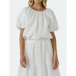 Spruce up your style this season with our floral texture puff cropped top. The pretty white top features puff sleeves and a floral textured fabric for a touch of femininity. Pair it with the matching skirt set for a complete look, or rock it on its own for a casual-chic vibe.