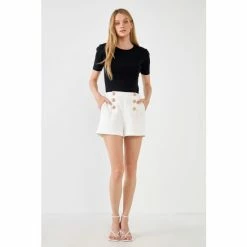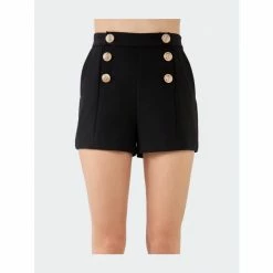 These shorts are sure to turn heads with their sleek gold button detail. With a high waist and invisible zipper, these shorts provide a flattering and comfortable fit. Made from luxurious fabric, they’re perfect for dressing up or down. Wear these shorts to your next special event or just when you want to feel glamourous.