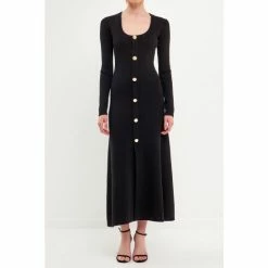 You’ll love the fit and feel of this fitted knit dress. This long-length knit dress is perfect for all body types. With a center front fake placket and front gold shank button closure, it gives you a stylish and put-together look. Whether you’re dressing up or dressing down, this versatile dress is a must-have in your wardrobe.