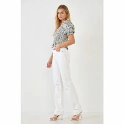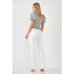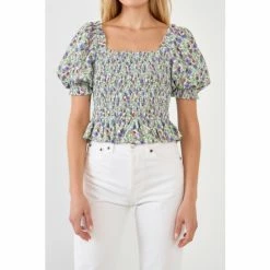We’re smocking pretty puff sleeves on this floral top for an ultra-feminine look. The smocked bodice is blouson and the silhouette is easy and relaxed. It’s the perfect top to wear on a sunny day.