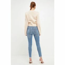 – Center front jewelry button closure