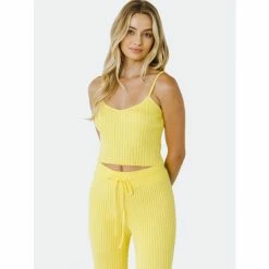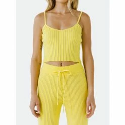 This lime cami crop top is made of knit fabric and is part of a matching set. It’s perfect for the professional woman who wants to feel stylish and comfortable at the same time. The knit fabric makes it breathable and stretchy, while the cropped silhouette provides a flattering fit.