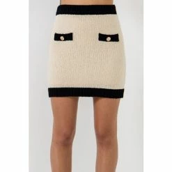 Modern and classic, this skirt is a must-have for any woman’s wardrobe. This lightweight knit skirt will keep you cool and comfortable all day long. Pair it with our 3 piece set for a complete look that is perfect for the office or a night out. The gold buttons and matching pocket and band make this skirt an instant classic.