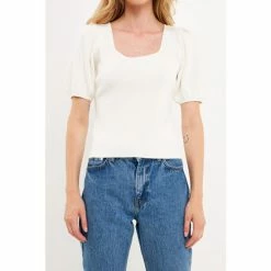 Add a touch of sweetness to your style with this puff top. it’s made with sweater knit fabric for a comfortable and warm fit. the puff sleeves and square neckline give it a vintage feel, while the fitted silhouette keeps it modern.