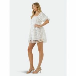 A flirty and feminine twist on the classic little black dress, this Lace Puff Mini Dress is perfect for your next date night. The puff sleeves and babydoll silhouette give this dress an effortlessly romantic feel, while the mini length keeps it flirty and fun. The fully lined dress is complete with a side invisible zipper for a seamless look. Just add your favorite heels and a sparkling necklace to complete the look.