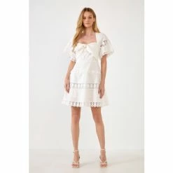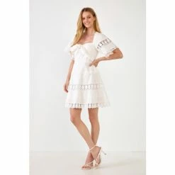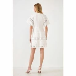 The perfect party dress for your little girl. She’ll love the pretty lace trim and sultry side zipper on this mini dress. With functional front ties, she can adjust the fit to her liking. Dress her up in style for any special occasion with lace trim mini dress.