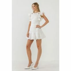 Romantically styled for those special occasions, this lace trimmed ruffle sleeve dress with cutout detail at the bodice is figure flattering and stunning. The center back zipper provides a comfortable and secure fit, while the lace trimmed sleeves and skirt add the perfect touch of elegance.