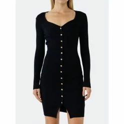 Dress up your wardrobe with this sexy and chic long sleeve button down knit dress. Keep it simple and elegant with this fitted bodycon dress that is perfect for a date night or a casual day. This elegant black dress is a must-have for any woman’s closet.