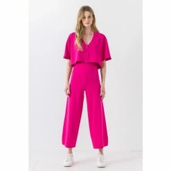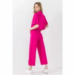 Get comfortable with this loungewear set. These wide-leg pants are the perfect pant for lounging, and the matching top is both cozy and fashionable.