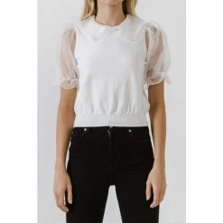 This short puff sleeve top is a must-have for any occasion. It’s a lightweight, knit top with collar detail and a back interior button. This piece is easy to dress up or down and can be worn during the day or at night. Pair this top with jeans and boots for a laid-back look or add a statement necklace for a more formal style.