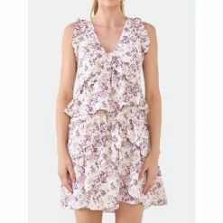This dress is perfect for a summer night out on the town. Make a statement with this playful ruffled mini dress. With its layers of soft fabric, this dress is feminine and comfortable. A fresh floral print makes it versatile enough to wear to any occasion. Throw on a denim jacket or an oversized cardigan to layer on top. pair with strappy heels or sandals for an elevated look.