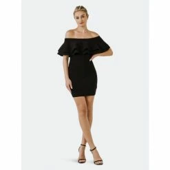– Off the shoulder- Tiered ruffles- Fitted- Mini length- Height 5’8”(173cm) / bust 32”(81cm) / waist 25”(67cm) / hip 35”(89cm)- Total length: 33.75″, bust: 31.75″