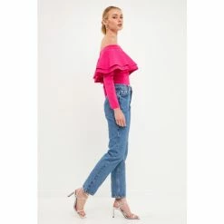 The best way to show off those shoulders. This Off Shoulder Knit Top is perfect for your next night out. With long sleeves and a flare detail, this top is both flirty and stylish. Pair it with your favorite jeans and heels for a complete look.