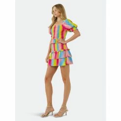 The ombre stripe smocked skirt is the perfect addition to your wardrobe. With a beautiful ombre stripe print, this skirt is sure to turn heads. The mini length and smocked detail make this skirt flirty and fun, while the tiered and fully lined design ensure that you’ll be comfortable all day long.