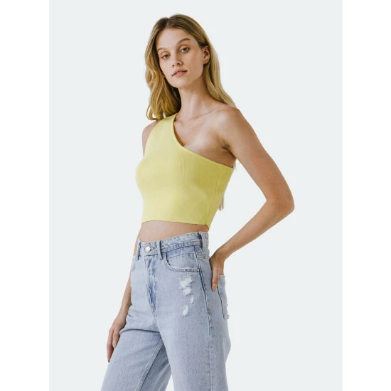– One shoulder- Fitted top- Knit- Cropped top- Total length : 16.50″ Bust : 31″