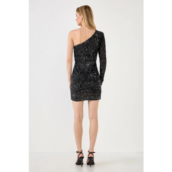 One shoulder sequins mini dress.