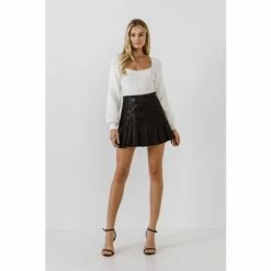 This skirt is designed to be your new go-to! The vegan leather mini skirt is perfect for creating a luxe look. Pair it with a cute top and boots for a chic look. It’s time to get on trend with this versatile pleated mini skirt!
