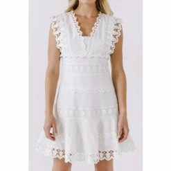 Looking for a pretty little dress to wear this spring? Well, look no further than our Plunging Neck Lace Trim Dress! This mini dress is fitted and features lace trim detail in lilac. It’s made of 100% cotton, making it perfect for warm weather days. So grab this dress before it sells out and enjoy looking beautiful all season long!