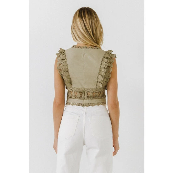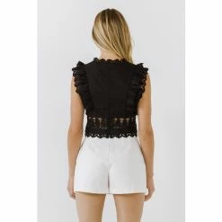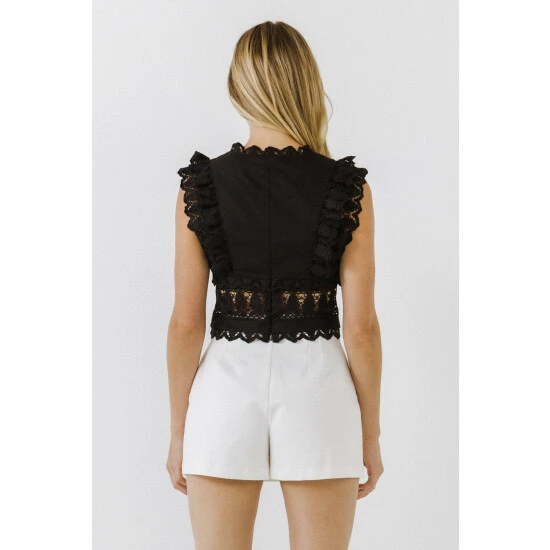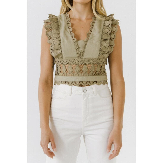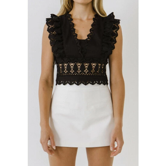 This top is perfect for that special occasion or date night. This crop top is made from a delicate lace fabric and features a plunging neckline. Pair this top with your favorite jeans or skirt for an evening out on the town.