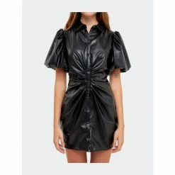 Strut your stuff in this sexy mini dress. This little number features a ruched waist detail and puff sleeves for a touch of femininity. The covered snap button closure keeps things classy and ensures that you’ll stay comfortable all night long. Whether you’re hitting the town or going out on a romantic date, this dress is sure to turn heads.