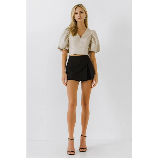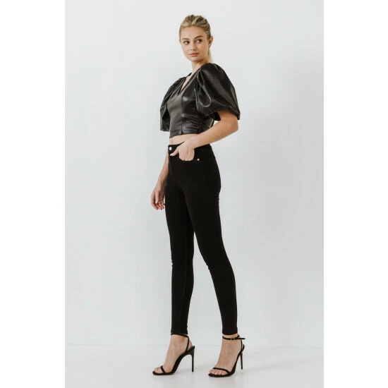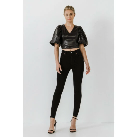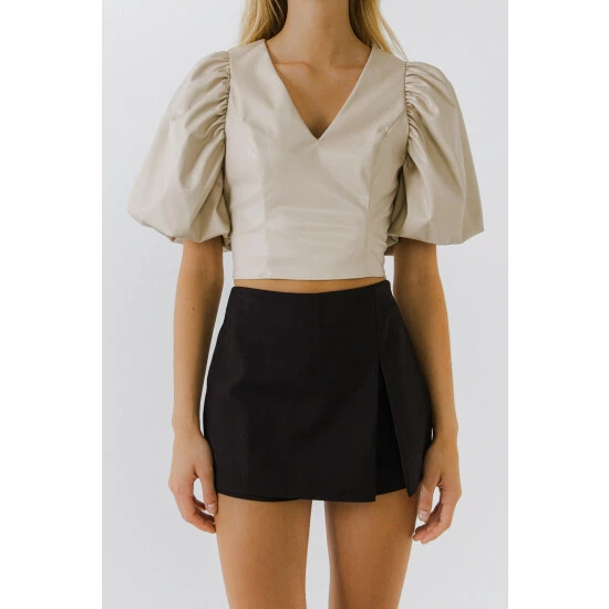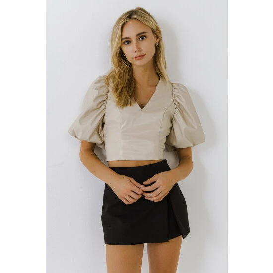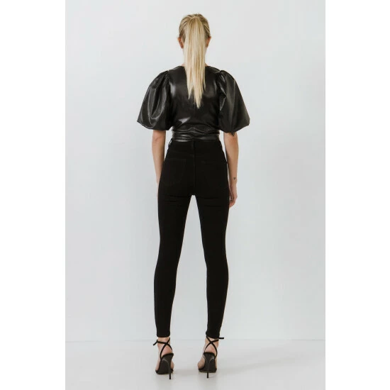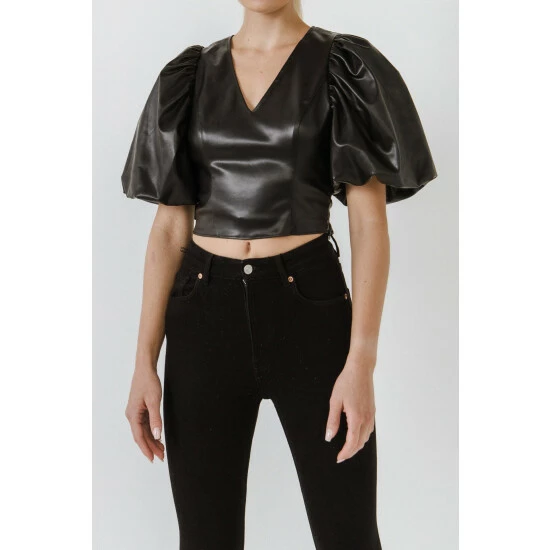 A must-have for any wardrobe. Made from pu fabric that stretches to your body’s curves, it has a flattering v neckline and a puff sleeve.