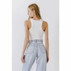 – Stretchy knit- Racerback- Sleeveless basic- Fitted bodice- Height 5’8”(173cm) / Bust 32”(81cm) / Waist 23”(58cm) / Hip 34”(86cm)- Total length: 19.25″, Bust: 30.50″