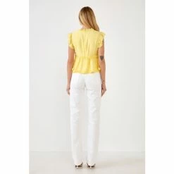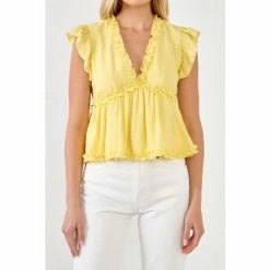 Top off your look with this Ruffle Detail Top. This top is lined for your comfort, with a V neckline and ruffle sleeves. A back zipper ensures a perfect fit. Whether you’re dressing up for a special occasion or dressing down for a day at the office, this top is sure to impress.