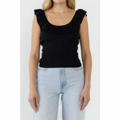 This top is giving us all the feels. With a round ruffle neckline and u-shape, this knit top is perfect for those days when you want to feel stylish and comfortable. And with its sleeveless design, it’s versatile enough to wear on any day of the week. A top that will make you feel pretty and confident, this is a piece you’ll love to wear time and time again.